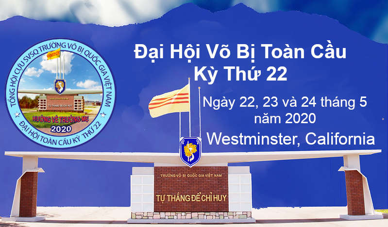 Ban tổ chức Đại Hội Võ Bị Toàn Cầu kỳ thứ 22 trong ba ngày 22, 23 và 24 tháng 5 năm 2020 tại nam California xin thông báo các cách thức ghi tên tham dự Đại Hội như sau: